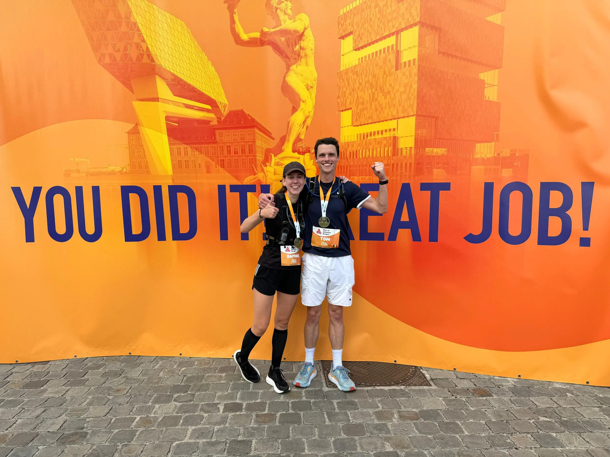 Professionally, Sam has a key role in the family’s business, regularly travelling for international customers. Because of our regular contacts and check-ins, we managed to build a solid training routine around his busy work-life schedule. Thanks to a data driven approach and input from his wearables (Sam wears an Oura ring) we kept close track on the impact of Sam’s trainings and recovery. Prior to his marathon, we worked on a pacing & nutrition strategy to make sure he would get to the finish in one piece.