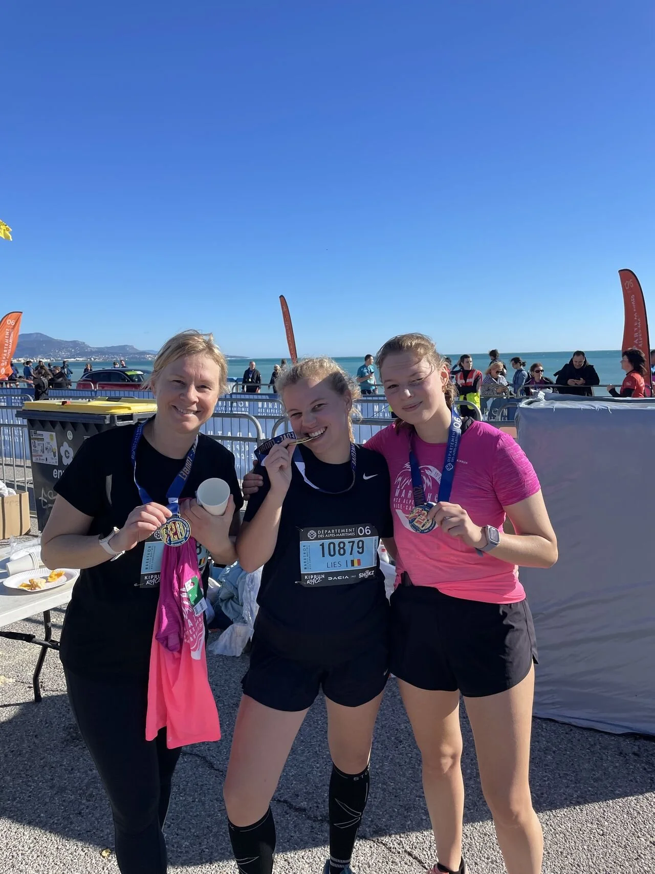 - “During the 20K I was tremendously excited. The beautiful course along the French Riviera and the fresh sea air made for a perfect setting. After 2h22, I proudly reached the finish line! The icing on the cake was sharing this adventure with my mom and sister. Thank you for the great coaching. I’m already looking for a next adventure out of my comfort zone!”